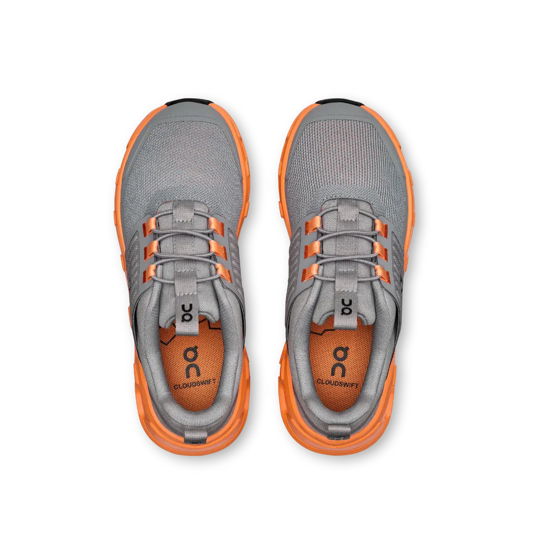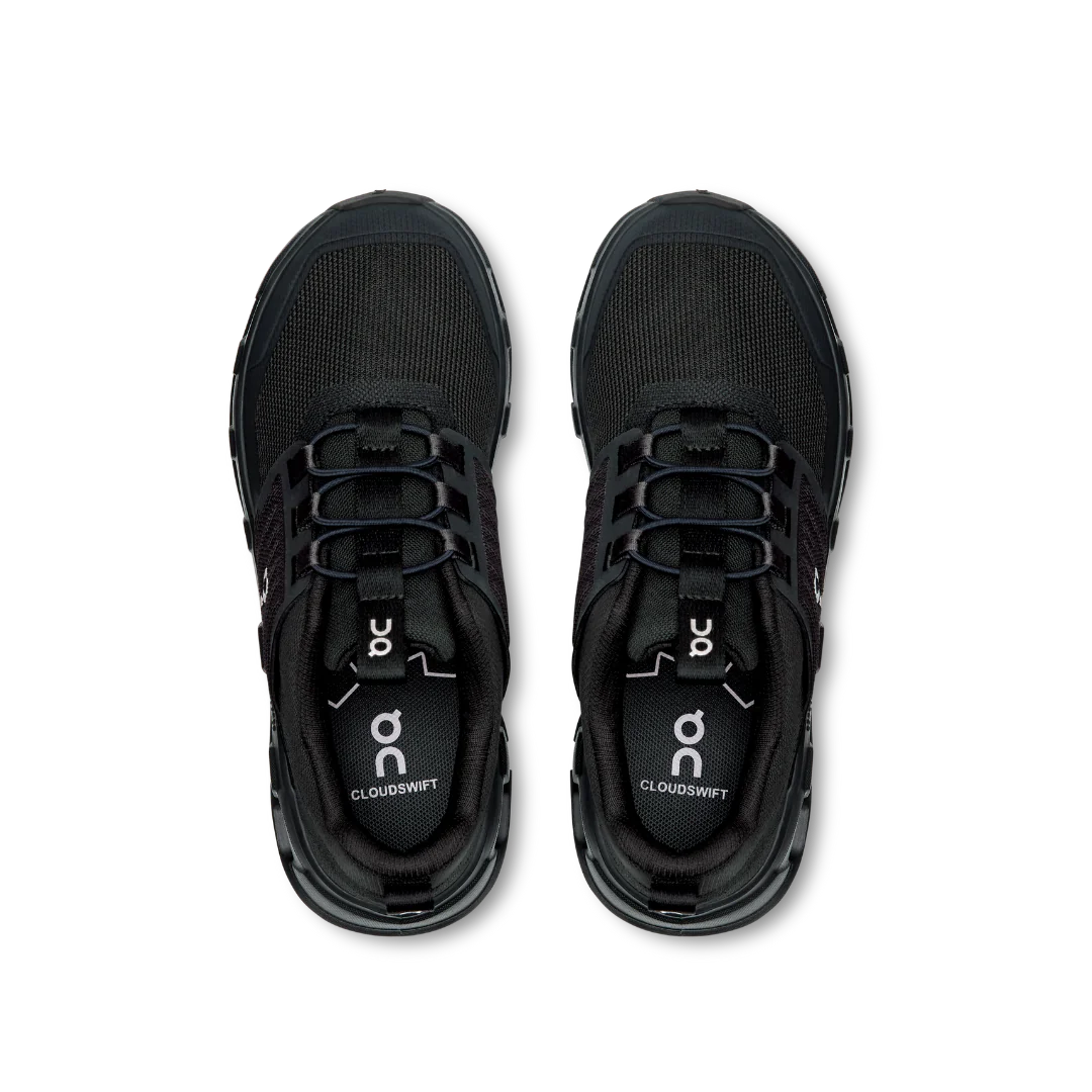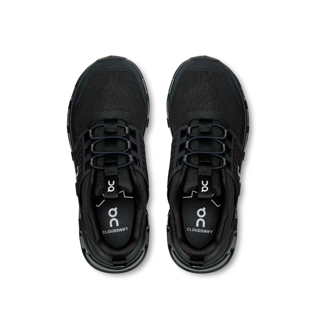 The On? Kids Cloudswift Kids are an expansion of the Cloudswift 4 by adapting it for the little feet. These shoes have the same quarter panel for a secure fit and CloudTec? cushioning, with kid-friendly easy on/off construction and TPU elements for durability and longevity. Their CloudTec midsole delivers a cushioned, smooth ride while the rubber outsole includes rubber inserts at the heel and forefoot for great grip. These lace-up shoes are made of an EVA insole and polyester lining. The 100% recycled polyester mesh upper is lightweight and breathable.