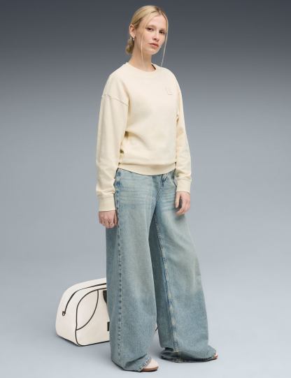 The Essentials Elevated Comfort Crew is designed with a supersoft terry fabric and dropped shoulders for a laid-back, breathable design that's tough to beat. The ribbed cuffs and embroidered logo add a touch of flair, perfect for layering or lounging.